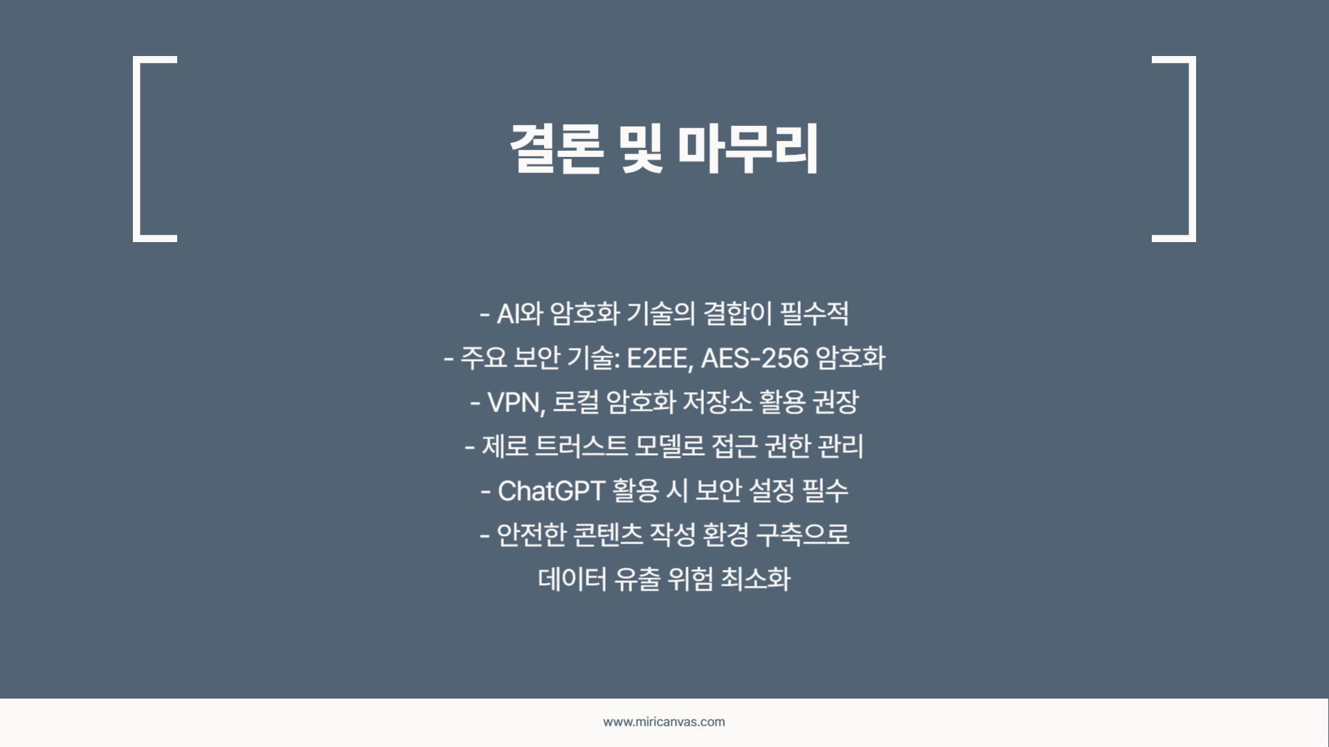 기업의 내부 문서, 의료 기록, 금융 데이터, 연구 자료 등은 **외부 유출 시 심각한 문제가 발생할 수 있는 민감한 정보**입니다. AI를 활용해 문서를 작성하더라도 **보안이 유지될 수 있도록 암호화 기술을 적용**해야 합니다.