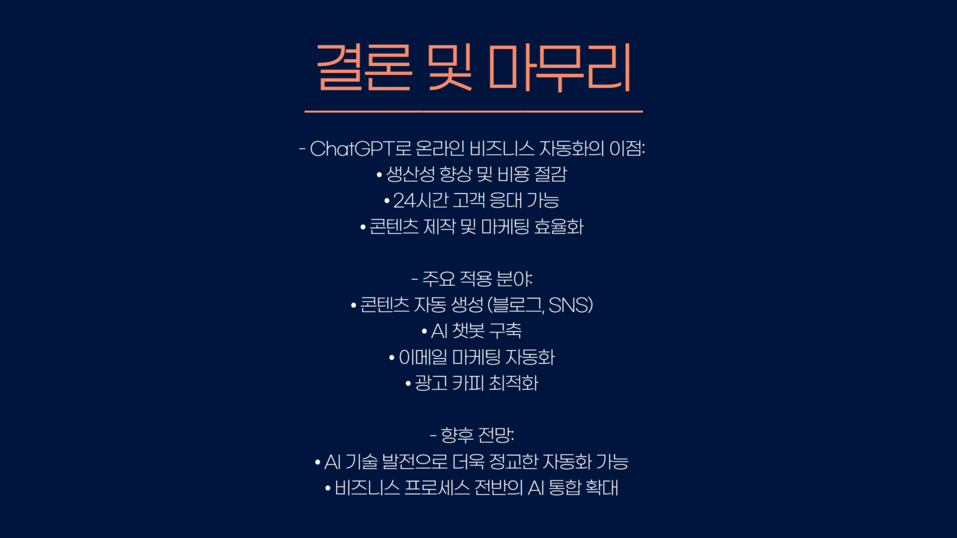 📌 결론: ChatGPT로 온라인 비즈니스를 자동화하세요!
