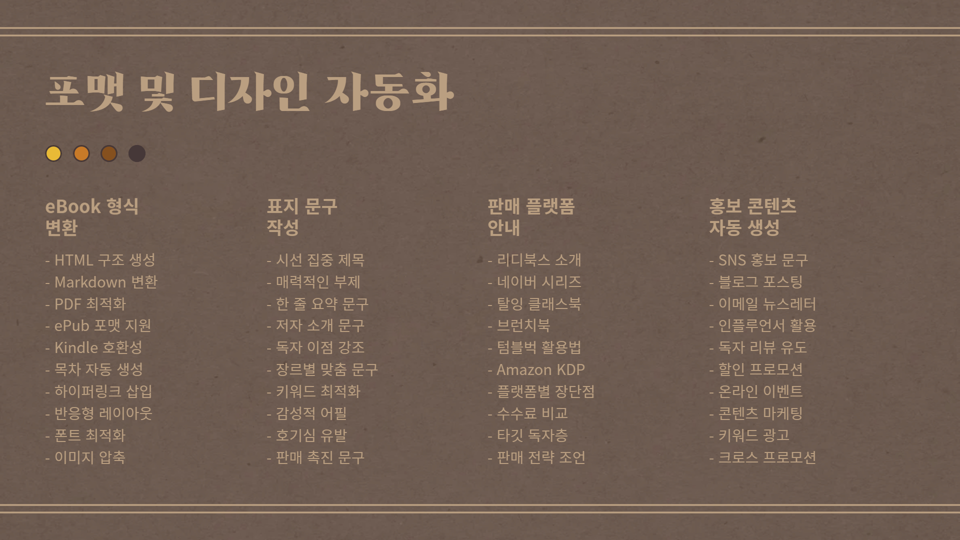 📌 3. 전자책 포맷 및 디자인 자동화 지원
