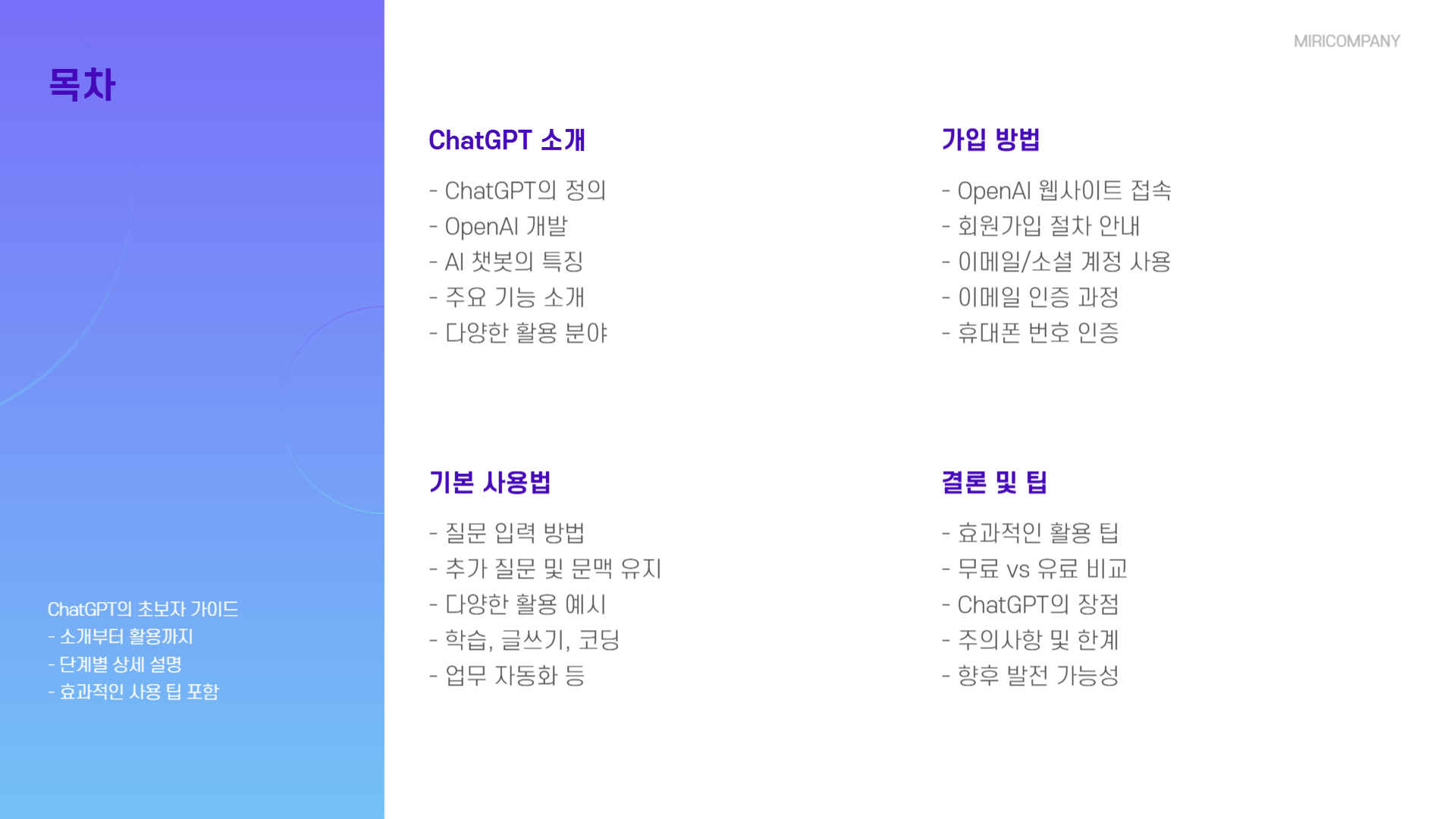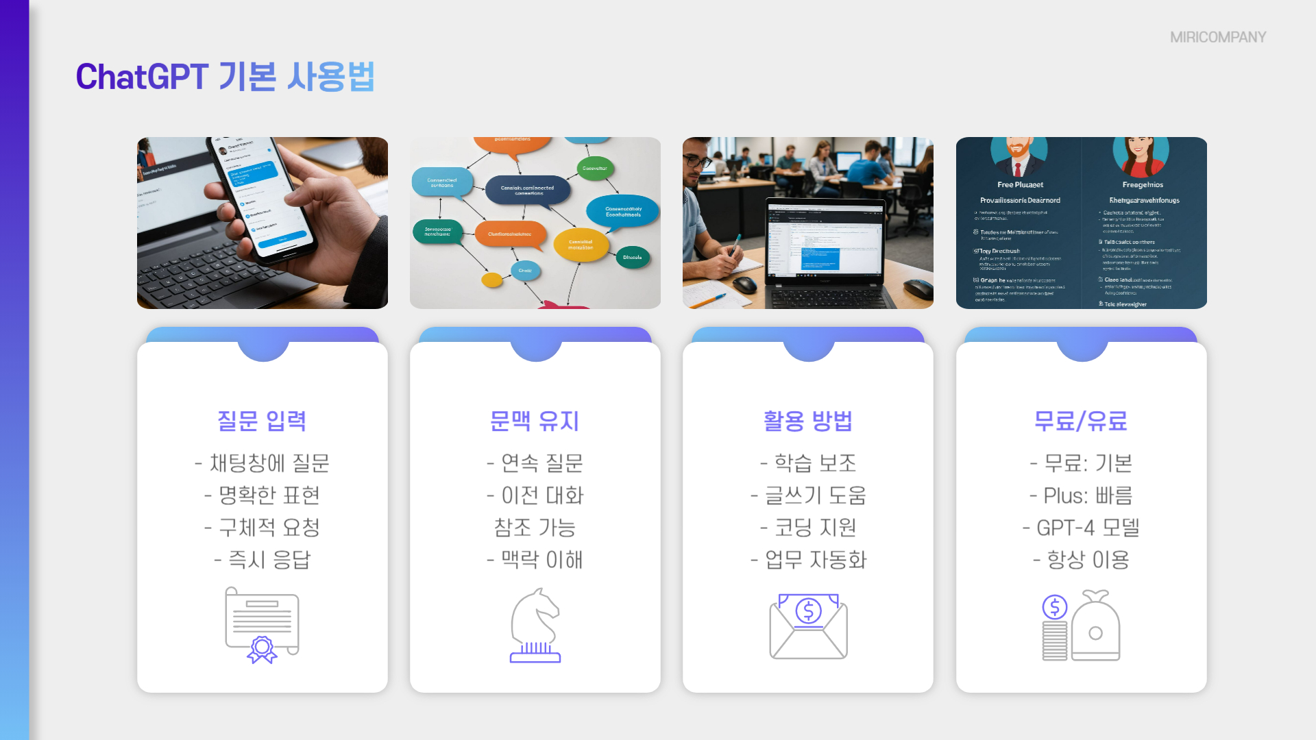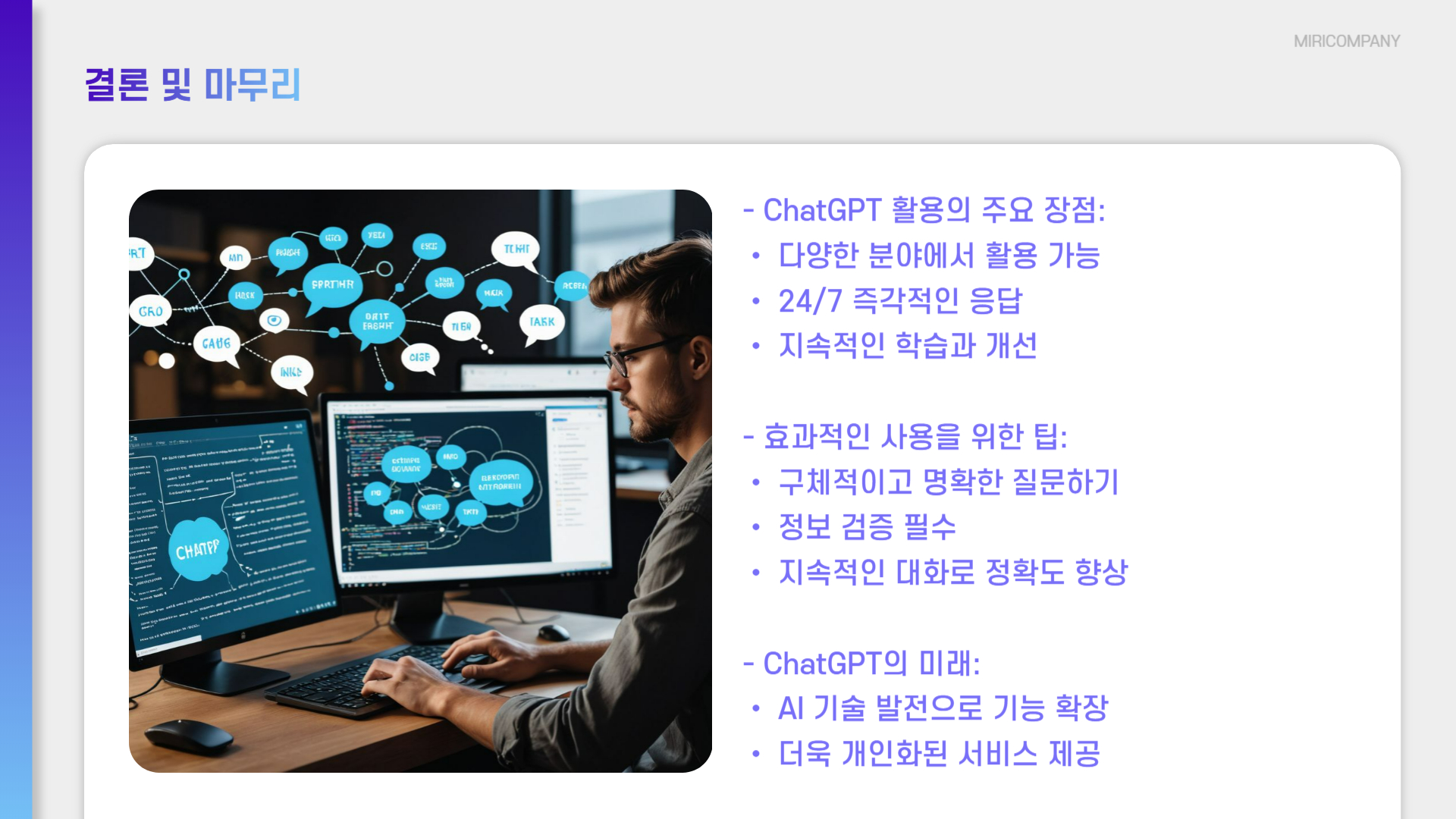 ChatGPT는 단순한 질문 응답뿐만 아니라 다양한 작업을 도와줍니다.